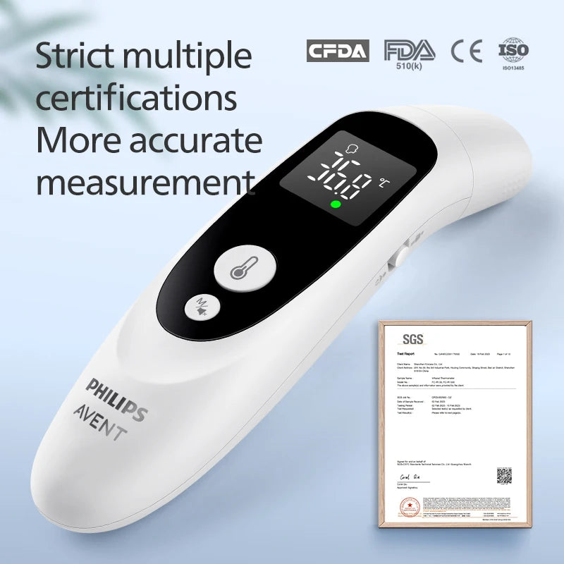 The PHILIPS AVENT 2-in-1 Thermometer is designed to assist parents and caregivers in monitoring temperature accurately and conveniently. With dual functionality, it allows for both forehead and ear temperature measurements, offering flexibility for various situations.