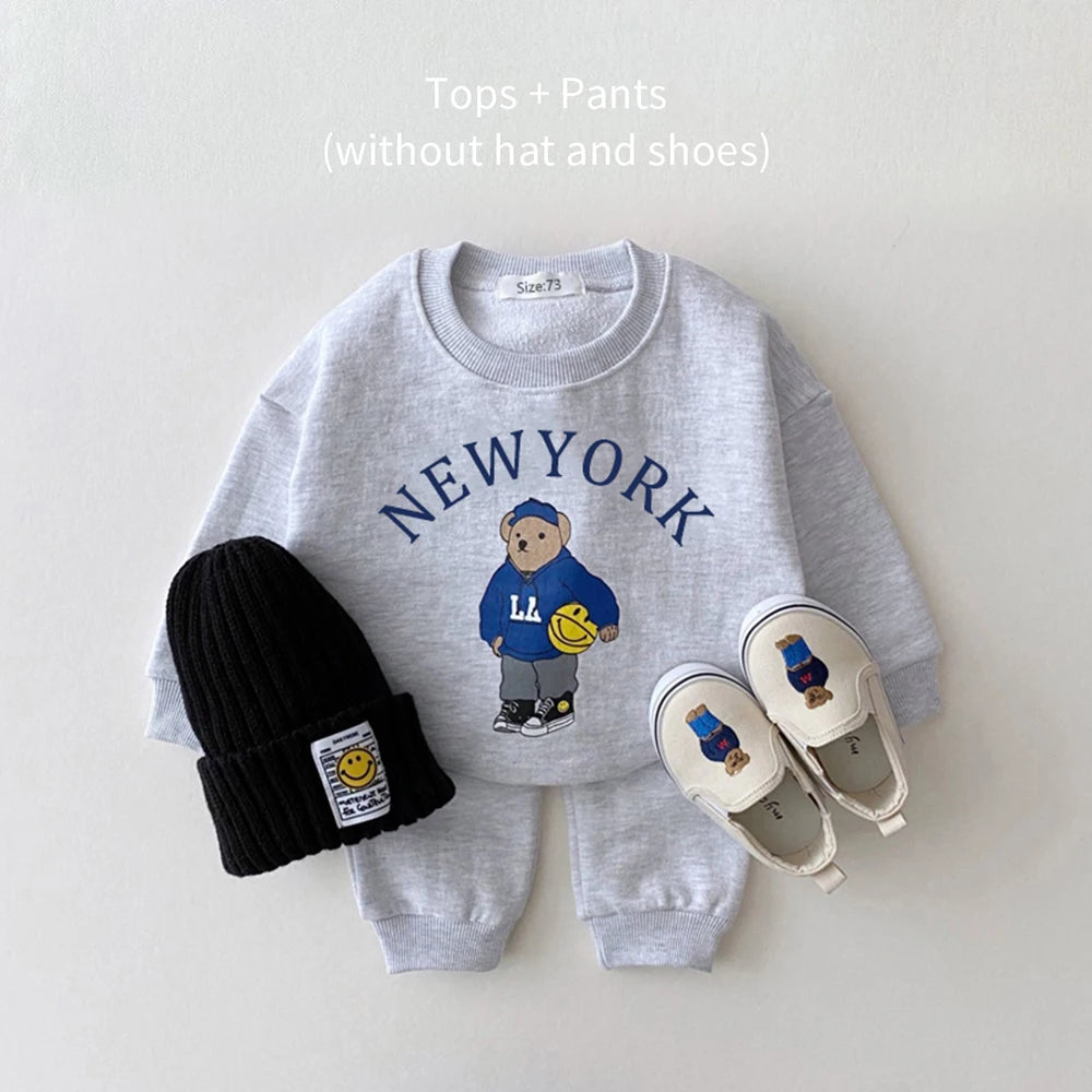 Keep your little one warm, cozy, and stylish with the Toddler's New York Teddy Tracksuit. Featuring a playful teddy bear graphic and crafted from soft, breathable cotton, this tracksuit is perfect for chilly days out and about or relaxing at home. The bright colors and cute design make it a favorite for both kids and parents!